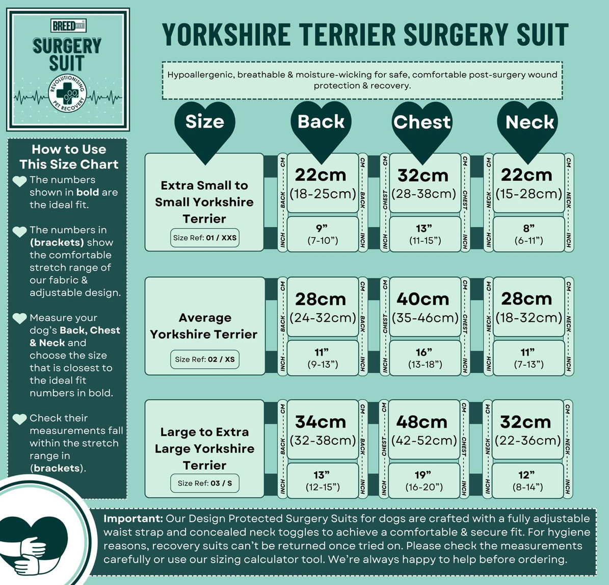 Yorkshire Terrier Dog Surgery Suit | Bamboo Post Op Recovery Wear | BreedFit®